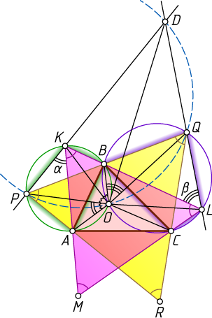 \angle PDQ=\angle PKL-\angle KLQ=(60^{\circ}+\alpha)-\beta,